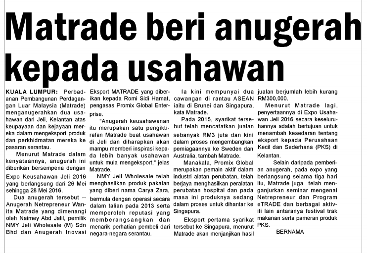 MATRADE Hands Out Awards to Jeli Entrepreneurs