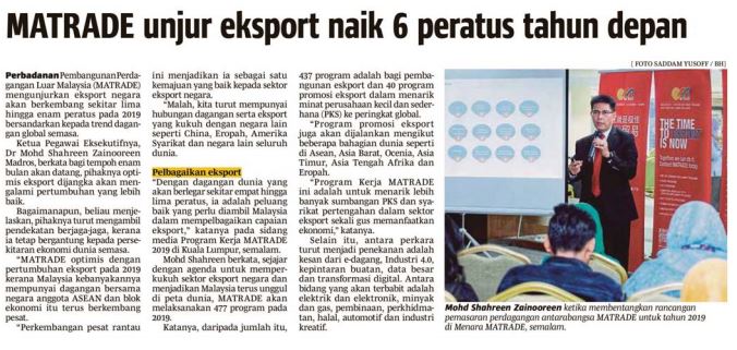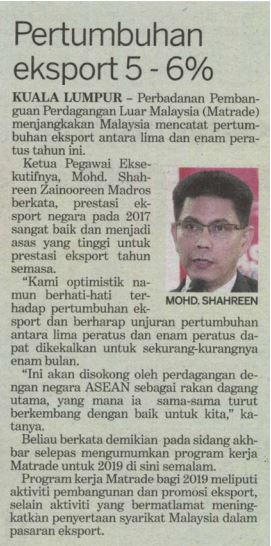 MATRADE Unjur Eksport Naik 6 Peratus Tahun Depan