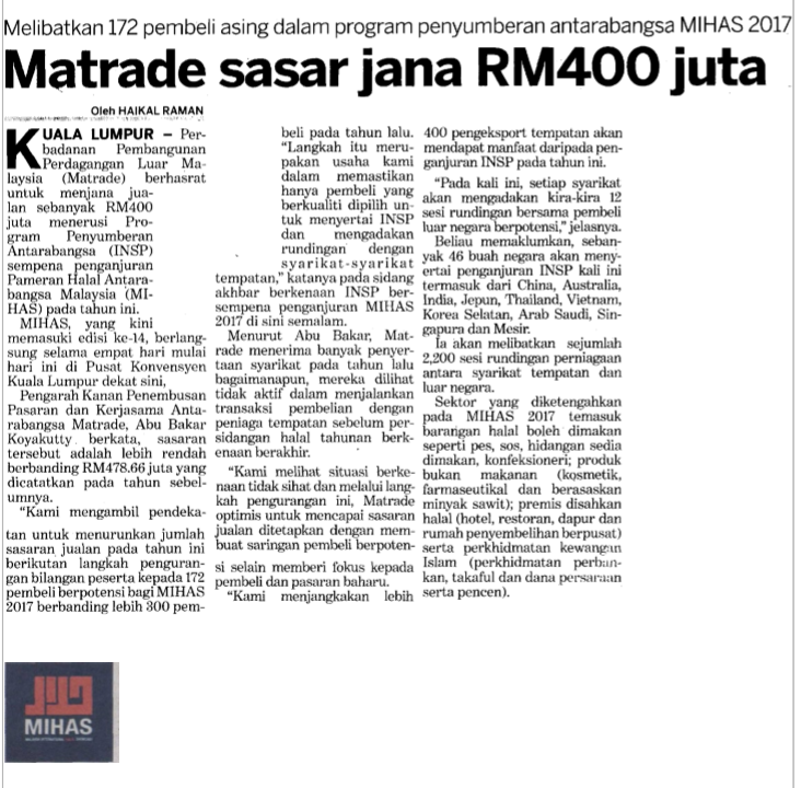 MATRADE Sasar Jana RM400 juta