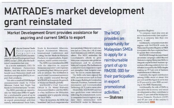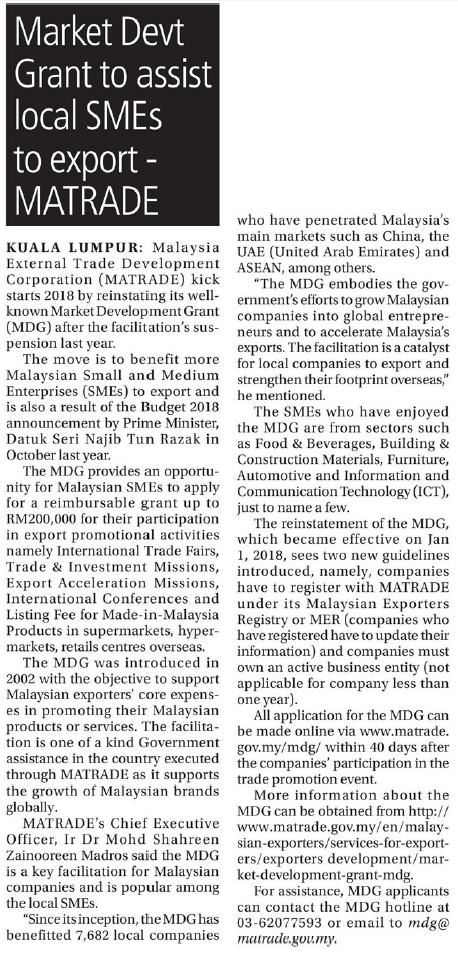 Market Devt Grant To Assist Local SMEs To Export - MATRADE