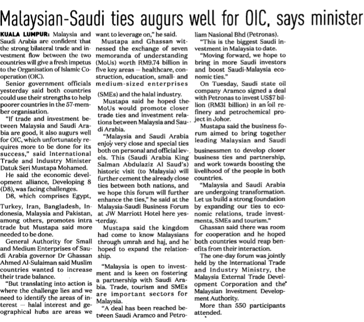 Malaysian-Saudi Ties Augurs Well for OIC, Says Minister