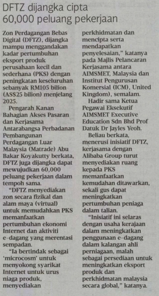 DFTZ Dijangka Cipta 60,000 Peluang Pekerjaan
