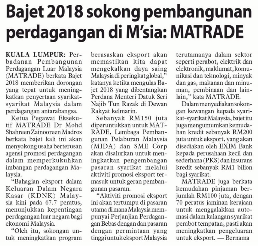 Bajet 2018 Sokong Pembangunan Perdagangan di Malaysia