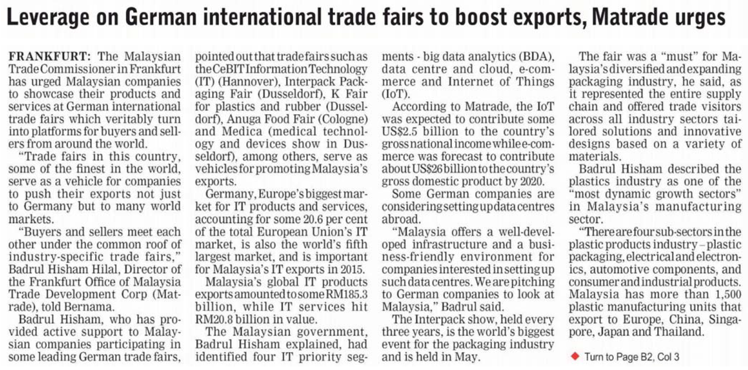 Leverage On German International Trade Fairs To Boost Exports MATRADE Urges_Pg1