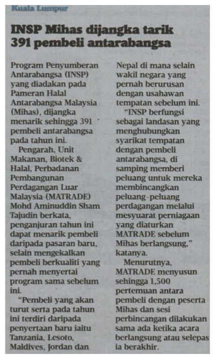 INSP MIHAS Dijangka Tarik 391 Pembeli Antarabangsa
