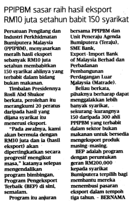 PPIPBM Sasar Raih Hasil Eksport RM10 juta Setahun Babit 150 Syarikat