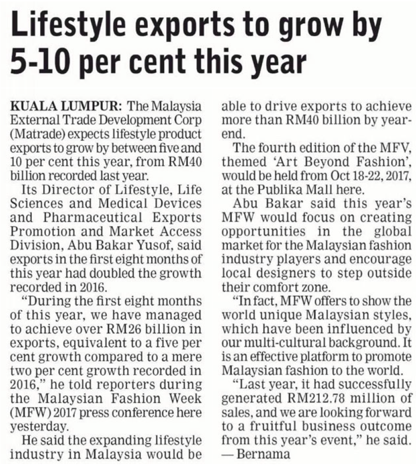 MATRADE Sasar Eksport Produk Gaya Hidup Melebihi RM40b