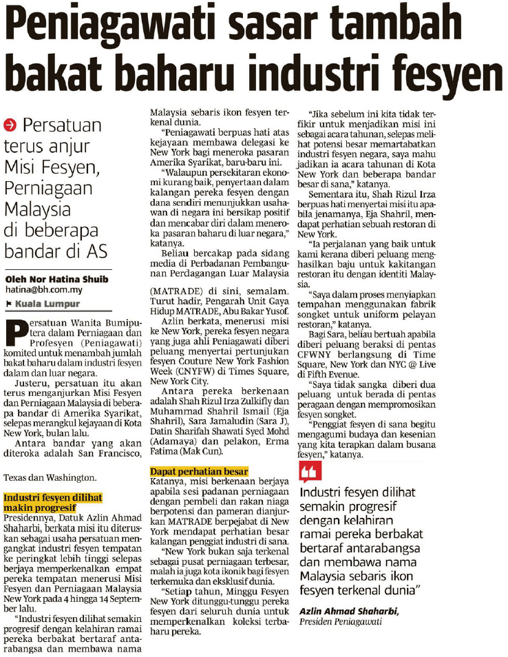 Peniagawati Sasar Tambah Bakat Baharu Industri Fesyen_Pg 1