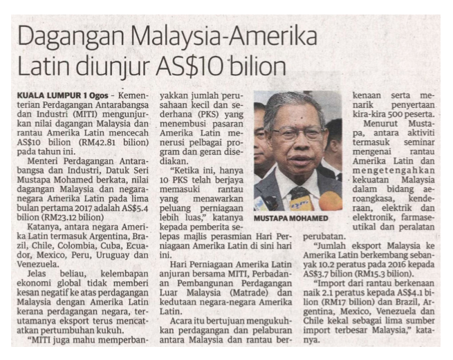 Dagangan Malaysia-Amerika Latin Diunjur AS Dollar 10 Bilion