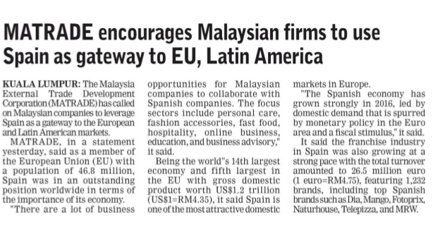 MATRADE Encourages Malaysian Firms to Use Spain as Gateway to EU Latin America