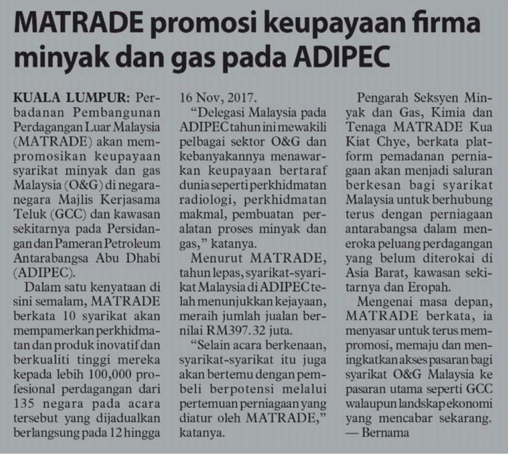 MATRADE Promosi Keupayaan Firma Minyak Dan Gas Pada ADIPEC